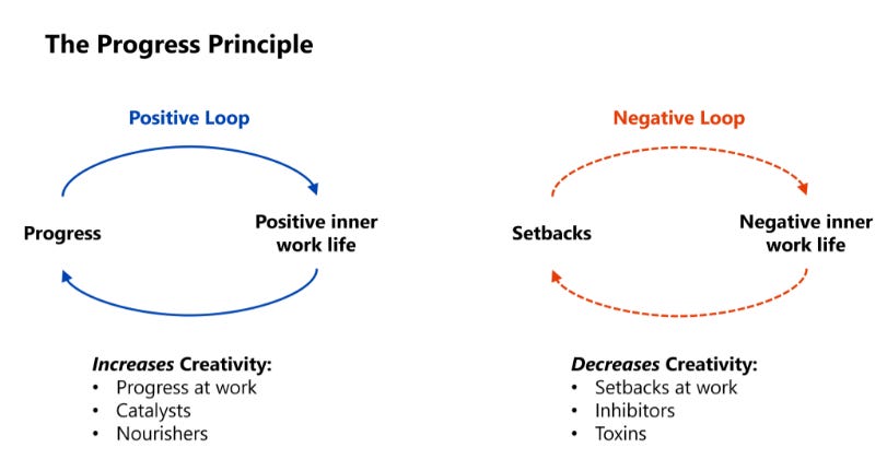 In the book “The Progress Principle”, the authors explain how some managers use a system of small wins to build momentum in meaningful work progress: